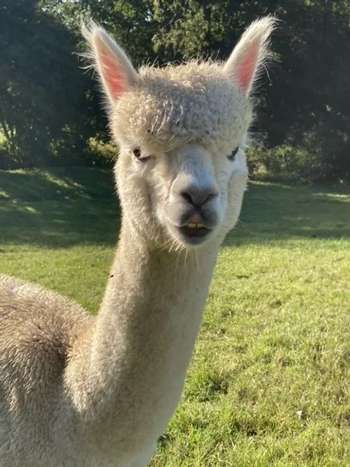 Rosebud Little Miss Annabelle is 9 years old and a rosette winner, she’s incredibly sweet natured, calm and easy to handle. Annie is mum to Catalina who is also for sale and so is her daughter Pearl so it would be perfect for all 3 to be kept together. We pioneered ‘alpaca yoga’ which featured on ITV This Morning, Annie participated in this along with all of our other experiences where the herd were free to move in the field. Annie is not halter trained but could make a great therapy alpaca if she can engage freely.
